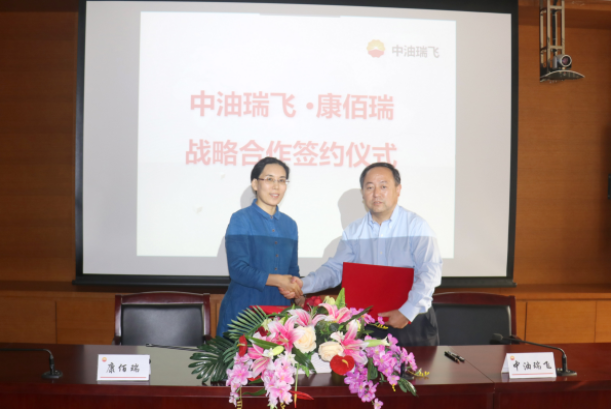 萬戶良方健康創始人(rén)兼總裁李曉霞與中油瑞飛∏★©↔(fēi)副總經理(lǐ)張志(zhì)偉簽署戰略合作(zuò)協議(yì)✔룕