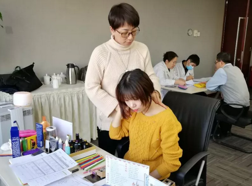 心理(lǐ)老(lǎo)師(shī)在為(wèi)☆©"員(yuán)工(gōng)進行(xíng)精油按>Ω♦摩放(fàng)松
